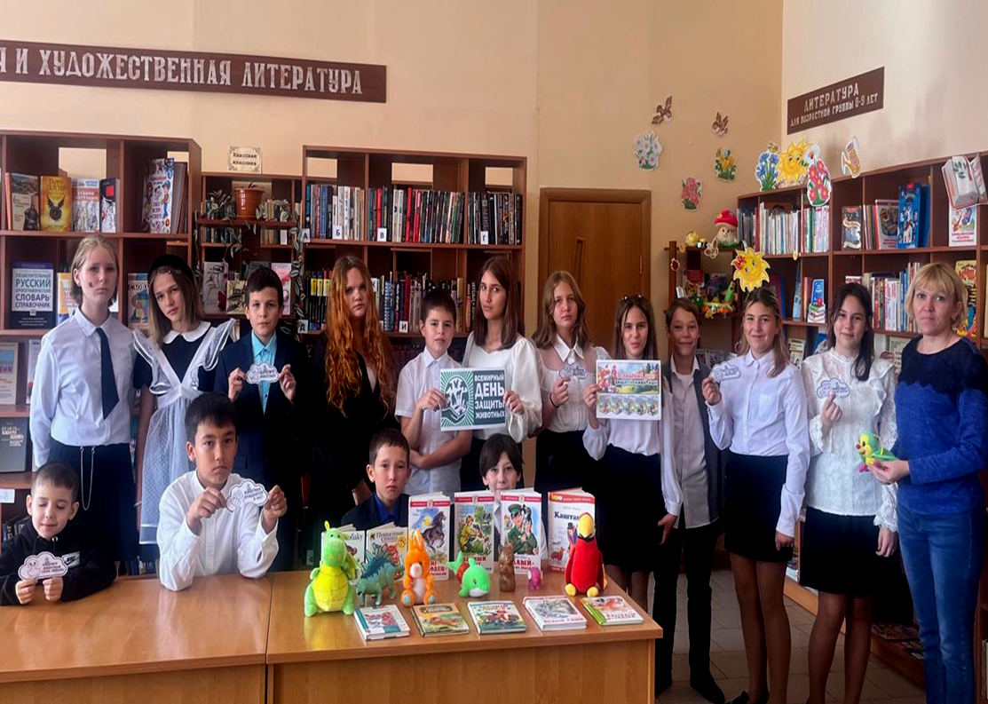 4 октября 2025 года 3 библиотеки-филиала МБУК «Библиотечная система Сорочинского муниципального округа» приняли участие в создании устного литературного альманаха «Книжный зоосад открыт для ребят», посвящённого Всемирному дню защиты животных. Новобелогорская б/ф организовала экологическое турне «Удивительное путешествие в мир животных», в которое «отправились» учащиеся Новобелогорского филиала МБОУ «В